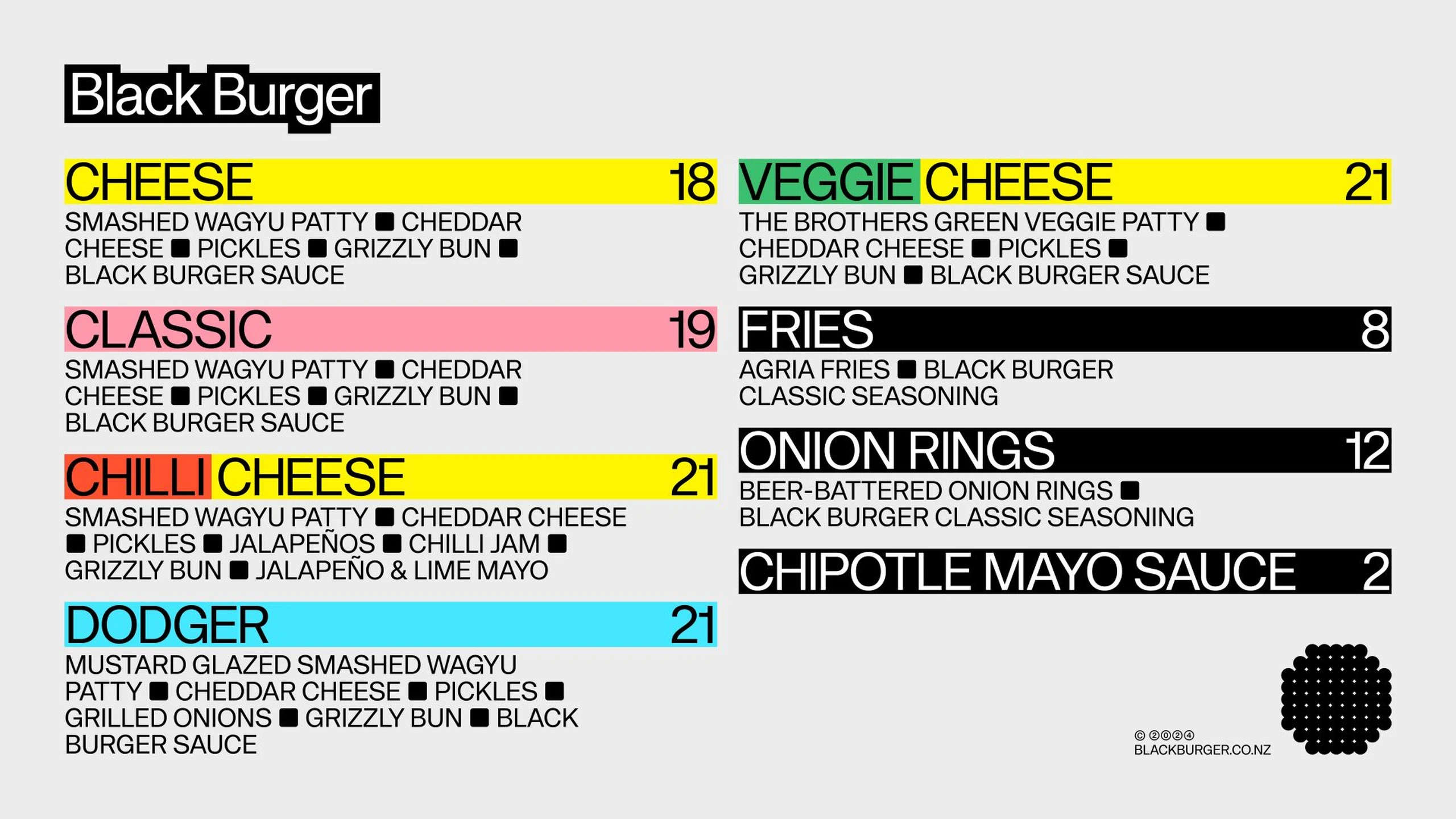Black Burger Our mission is simple; take the finest ingredients and make the best damn cheeseburger in New Zealand.